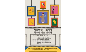 담양군청소년상담복지센터는 11월 1일부터 7일까지 담빛청소년문화의집 1층 로비에서 청소년 미술작품 전시회 ‘예술한첩: 나를 찍다’를 연다.28일 담양군에 따르면 이번 전시는 한국문화예술교육진흥원 ‘마음치유, 봄처럼’ 공모사업에 전남 22개 시·군 가운데 유일하게 선정된 담양군청소년상담복지센터와 학교밖청소년지원센터가 5월부터 9월까지 진행한 예술활동의 결과물이다.개막일에는 전시회 기념식과 케이터링 리셉션이 열려 청소년, 학부모, 지역주민이 함께 작품을 감상하고 교류하는 자리가 마련된다. 또한 작품 해설 프로그램 ‘큐레이터 토크’를 통해 관람객들이 작품의 의미와 제작 과정을 들을 수 있는 시간도 준비됐다.손은