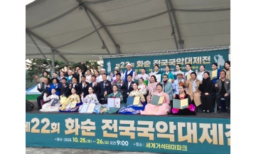화순군은 지난 10월 26일(일) 화순세계거석테마파크에서 ‘2025 제22회 화순 전국국악대제전’을 개최했다고 28일 밝혔다. 이번 경연대회의 예선도 화순 고인돌 가을꽃 축제가 진행되는 가운데, 지난 25일 토요일 세계거석테마파크에서 진행됐다.‘화순 전국국악대제전’은 화순군이 주최하고 화순군과 (사)화순국악진흥회가 공동 주관하는 전국단위 국악 경연대회이다. 이번 대회는 판소리, 기악, 무용, 민요 4개 분야에서 경연이 진행되어 전국에서 모인 국악인들이 그동안 갈고닦은 기량을 선보였다. 특히 2025 화순 고인돌 가을꽃 축제가 진행 중인 가운데, 예선 본선 모두 축제장 인근 세계거석테마파크에서 펼쳐져 관광객들에게 쉽게 접하기