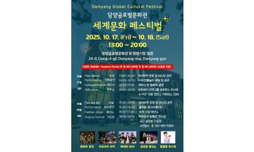 담양군(군수 정철원)은 오는 17일부터 이틀간 담양글로벌문화관과 담양오일시장 일원에서 ‘세계문화페스티벌’을 연다고 밝혔다.행사에서는 세계 각국의 전통의상 패션쇼와 공연, 의상체험, 먹거리 부스 등 다채로운 프로그램이 펼쳐진다. 행사는 오후 1시부터 밤 8시까지 진행되며, 군민과 관광객, 지역 상인, 예술인이 함께 어우러지는 문화 교류의 장이 될 전망이다.주요 프로그램으로는 ▲전통의상을 선보이는 글로벌 패션쇼 ▲직접 입어보는 의상체험 ▲세계 전통문화 공연 ▲K-POP 커버댄스 ‘데몬 헌터스’ 무대 ▲노래자랑과 버스킹 공연 ▲세계 먹거리와 벼룩시장 등이 준비됐다.특히 세계 각국의 의상과 공연이 어우러지는 패션쇼, 관