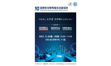 인천관광공사(사장 민민홍)와 ㈜메쎄이상이 공동으로 주최하는 국내 대표 소부장(소재·부품·장비) 전문 전시회 ‘2021 대한민국화학제조산업대전’이 26일부터 28일까지 3일간 송도컨벤시아에서 개최된다. 국제전시협회(UFI)의 국제인증을 받은 인천 최초의 전시회인 ‘2021 대한민국 화학제조산업대전’은 제12회 국제코팅접착필름산업전, 제9회 국제첨단표면처리‧도장산업전, 제3회 국제화학·바이오장비&분석기기전 총 3개 전시회가 동시 개최된다. 이번 전시회에는 칼라런트코리아, 마이크로컴퍼지트, 등 약 130여개 이상의 기업이 참가하여 케미칼 원료, 코팅, 표면처리, 화학 실험장비 등 다양한 제품과 기술을 선보일 예정으로, 소