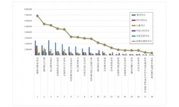 지난 한달간 대한민국 도시 브랜드평판을 빅데이터로 분석한 결과, 1위 서울시 2위 부산시 3위 대전시 순으로 조사됐다. 한국기업평판연구소(소장 구창환)는 대한민국 도시에 대해 브랜드 평판조사를 실시한 결과 지난 6월 26일부터 7월 26일까지의 도시 브랜드 빅데이터가 6,698만317개로 분석되며 지난 6월 도시 브랜드 빅데이터 6,212만5,221개와 비교하면 7.82% 증가했다고 26일 밝혔다. 브랜드에 대한 평판은 브랜드에 대한 소비자들의 활동 빅데이터를 참여가치, 소통가치, 소셜가치, 시장가치, 재무가치로 나누게 되며 대한민국 도시 브랜드평판지수는 참여지수, 미디어지수, 소통지수, 커뮤니티지수로 분석했다. 연구소에 따