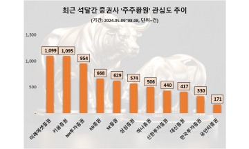 최근 3개월간 국내 증권사 가운데 '주주환원'에 가장 많은 관심을 쏟은 곳은 '미래에셋증권'으로 나타났다. 이어 키움증권과 NH투자증권 순이었다.증권업계 전체 주주환원 관심도는 지난해 같은 기간에 비해 크게 높아져 눈길을 끌고 있다.12일 데이터앤리서치는 최근 석달간(2024.5.9~8.8) 뉴스·커뮤니티·카페·유튜브·트위터·인스타그램·페이스북·카카오스토리·지식인·기업/조직·정부/공공 등 12개 채널 23만개 사이트를 대상으로 임의 선정한 국내 주요 증권사 11곳의 '주주환원' 관련 포스팅 수를 조사했다고 밝혔다.분석 대상 증권사는 조사기간 '주주환원' 정보량 순으로 △미래에셋증권(006800) △키움증권(039490) △NH투자증권