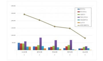 지난 한달간 지방은행 브랜드평판을 빅데이터로 분석한 결과, 1위 부산은행 2위 광주은행 3위 전북은행 순으로 조사됐다. 한국기업평판연구소(소장 구창환)는 대한민국 지방은행 브랜드인 부산은행·광주은행·전북은행·제주은행·경남은행에 대해서 지난 7월 8일부터 8월 8일까지의 지방은행 브랜드 빅데이터 839만837개를 분석하여 소비자들의 지방은행 브랜드 평판을 알아낸 결과 지난 7월 지방은행 브랜드 빅데이터 891만2,145개와 비교하면 5.85% 줄어들었다고 8일 밝혔다. 브랜드에 대한 평판지수는 브랜드에 대한 소비자들의 활동 빅데이터를 참여가치, 소통가치, 소셜가치, 시장가치, 사회공헌가치로 나누게 되며 지방은행 브
