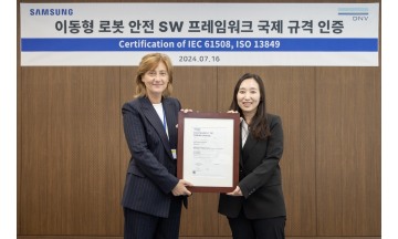 삼성전자는 자체 개발한 '이동형 로봇용 안전 소프트웨어 프레임워크(Safety Software Framework)'가 국제 인증기관인 DNV(Det Norske Veritas)로부터 국내 최초로 국제 규격 'IEC 61508'과 'ISO 13849' 인증을 획득했다고 17일 밝혔다.'IEC 61508'은 IEC(국제전기기술위원회, International Electrotechnical Commission)에서 제정한 국제 표준으로 SIL(Safety Integrity Level)에 따른 설계, 개발, 검증 및 유지보수 전 과정에서 안전성을 보장하기 위한 요구사항을 포함하고 있다.'ISO 13849'는 ISO(국제표준화기구, International Organization for Standardization)에서 기계류의 안전 부품에 대한 안전 요구사항을 정의한 국제 표준으로 PL