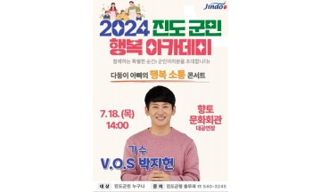 진도군(군수 김희수)은 2024년 7월 '진도 군민행복 아카데미'를 오는 18일 목요일 오후 2시 진도향토문화회관 대공연장에서 전 군민을 대상으로 개최한다고 16일 밝혔다.이번 아카데미는 '다둥이 아빠의 행복·소통 콘서트'라는 주제로 ‘가수 그룹 V.O.S’의 리더 박지헌 강사를 초청해 강연을 진행한다. 박지헌 강사는 6남매의 다둥이 아빠로서 육아에 대한 고민 상담, 노하우 전달은 물론 V.O.S의 대표곡 등을 선보이며 군민들에게 많은 공감과 즐거움을 자아낼 것으로 기대된다.진도 군민행복 아카데미는 누구나 입장 가능하며, 진도군 관계자는“무덥고 습한 장마철 기간 속 군민들께서 7월 강연과 함께 시원한 기분전환의 시간이 되길 바란