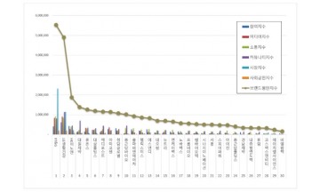 지난 한달간 보증보험 브랜드평판을 빅데이터로 분석한 결과, 1위 신용보증기금 2위 서울보증보험 3위 주택도시보증공사 순으로 조사됐다. 한국기업평판연구소(소장 구창환)는 보증보험 4개 브랜드에 대해서 빅데이터 분석을 활용한 브랜드 평판조사를 실시한 결과 지난 6월 25일부터 7월 25일까지의 보증보험 브랜드 빅데이터가 1,075만2,756개로 분석되며 지난 6월 보증보험 브랜드 빅데이터 1,066만8,437개와 비교하면 0.79% 증가했다고 25일 밝혔다. 브랜드에 대한 평판은 브랜드에 대한 소비자들의 활동 빅데이터를 참여가치, 소통가치, 소셜가치, 시장가치, 재무가치로 나누게 되며 보증보험 브랜드평판 분석은 참여지수, 미디어지