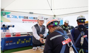 롯데건설은 23일 천안 청당동 소재 천안 롯데캐슬 더 청당 현장에서 혹서기를 맞아 온열질환 예방을 위한 ‘아이스 밤(ICE BOMB) 캠페인’을 실시했다고 밝혔다. ‘ICE BOMB 캠페인’은 롯데건설이 자체 시행하는 온열질환 예방 활동으로, 오는 8월 14일까지 전 현장 근로자 대상으로 팥빙수와 간식, 건강음료 및 혹서기 용품 약 3만2,000인분을 나눠주는 캠페인이다. 이날 현장에는 박현철 롯데건설 부회장이 근로자들의 노고를 격려하기 위해 직접 현장을 방문했다. 박 부회장은 550여 명의 현장 근로자들 대상으로 직접 팥빙수와 건강음료, 혹서기용품을 건네며 폭염에 지친 근로자들의 노고에 감사와 격려를 전했다.박현철 부회장은 캠페인 참