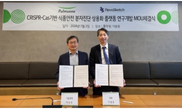 풀무원(대표 이효율, 017810)은 지난 2일 충북 오송 풀무원기술원에서 바이오공학 전문기업인 레보스케치와 ‘크리스퍼 카스(CRISPR-Cas) 기반 식품안전 분자진단 상용화 플랫폼 연구개발 업무협약(MOU)’을 체결했다고 3일 밝혔다. 크리스퍼 카스는 2020년 노벨화학상 수상 기술로 유전체에서 특정 염기서열을 인식한 후 해당 부위의 유전자(DNA)를 잘라내는 기술이다. 코로나19 신속 진단에 이 기술이 활용되는 등 4차 산업혁명 시대의 핵심 바이오 기술로 평가되고 있다. 풀무원은 크리스퍼 카스 분자진단 기술을 실시간으로 현장에서 구현하기 위해 레보스케치와 협력 플랫폼을 구축할 계획이다. 차세대 글로벌 식품안전 진단 시장을