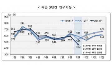 9월 인구이동 46만2000명.. 전년 대비 21.8% 급감