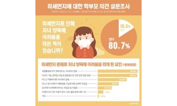 학부모 10명 중 8명 “미세먼지 때문에 자녀 양육 어렵다”