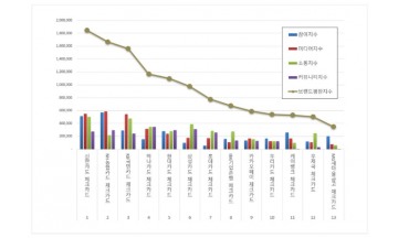 지난 한달간 대기업집단 브랜드평판을 빅데이터로 분석한 결과, 1위 삼성 2위 현대자동차 3위 SK 순으로 조사됐다. 한국기업평판연구소(소장 구창환)는 지난 9월 10일부터 10월 10일까지의 66개 대기업집단 브랜드 빅데이터 1억1,101만8,806개를 분석하여 대기업집단의 미디어, 소통, 커뮤니티, 사회공헌, 소비자지수, ESG를 분석하여 브랜드평판지수를 측정한 결과 지난 9월 브랜드 빅데이터 1억3,058만9,669개와 비교하면 14.99% 줄어들었다고 10일 밝혔다. 브랜드 평판지수는 브랜드 빅데이터를 추출하고 소비자 행동분석을 하여 참여가치, 소통가치, 미디어가치, 소셜가치, 사회가치로 분류하고 가중치를 두어 나온 지표이며 브랜