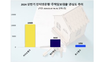 저금리 대환대출 많은 '카카오뱅크' 상반기 주담대 관심도 톱…케이·토스뱅크 순