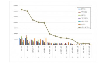 대학교 브랜드평판 2024년 9월 빅데이터 분석결과, 1위 서울대학교 2위 연세대학교 3위 고려대학교 순으로 분석됐다. 한국기업평판연구소는 국내 소비자에게 사랑받는 대학교에 대한 브랜드 빅데이터 평판분석을 했다. 대학교 브랜드평판 분석은 2024년 8월 10일부터 2024년 9월 10일까지의 브랜드 빅데이터 141,619,312개를 분석했다. 지난 8월 대학교 브랜드 빅데이터 145,539,157개와 비교하면 2.69% 줄어들었다. 브랜드에 대한 평판은 브랜드에 대한 소비자들의 활동 빅데이터를 참여가치, 소통가치, 소셜가치, 시장가치, 재무가치로 나누게 된다. 대학교 브랜드 브랜드평판지수는 소비자들의 디지털 행태를 평판 분석 알고리즘