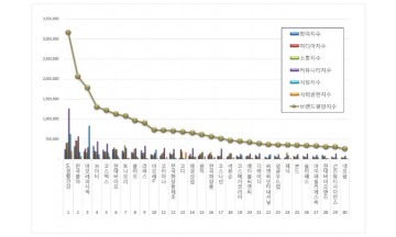 최근 한달간 화장품 상장기업 브랜드평판 빅데이터로 분석한 결과, 1위 LG생활건강 2위 한국콜마 3위 아모레퍼시픽 순으로 나타났다.20일 한국기업평판연구소(소장 구창환)는 국내 화장품 상장기업에 대한 브랜드 빅데이터 평판분석을 했다고 밝혔다. 지난 8월 20일부터 9월 20일까지의 화장품 상장기업 브랜드 빅데이터 2,568만5,830개를 분석했다. 지난 8월 화장품 상장기업 브랜드 빅데이터 2,911만8,433개와 비교하면 11.79% 줄어들었다. 브랜드에 대한 평판은 브랜드에 대한 소비자들의 활동 빅데이터를 참여가치, 소통가치, 소셜가치, 시장가치, 재무가치로 나누게 된다. 브랜드평판지수는 소비자들의 온라인 습관이 브랜드 소비에 큰