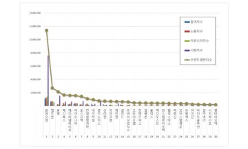 올 상반기 주요 손해보험사 가운데 고객들의 '보험료' 관심도(정보량=포스팅 수)가 가장 높은 곳은 '삼성화재'로 나타났다. 이어 '현대해상'과 'KB손해보험', '메리츠화재' 순이었다. 27일 데이터앤리서치는 빅데이터뉴스 의뢰로 뉴스·커뮤니티·블로그·카페·유튜브·트위터·인스타그램·페이스북·카카오스토리·지식인·기업/조직·정부/공공 등 12개 채널 23만개 사이트를 대상으로 2024년 1월부터 6월까지 임의선정한 10개 손해보험사 보험료 관련 정보량을 조사했다고 밝혔다.조사 대상 손보사는 정보량 순으로 △삼성화재(000810) △현대해상(001450) △KB손해보험 △메리츠화재 △DB손해보험(005830) △롯데손해보험(000400) △한화손