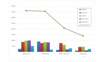 지난 한달간 보증보험 브랜드평판을 빅데이터로 분석한 결과, 1위 신용보증기금 2위 서울보증보험 3위 주택도시보증공사 순으로 조사됐다.     한국기업평판연구소(소장 구창환)는 보증보험 4개 브랜드에 대해서 빅데이터 분석을 활용한 브랜드 평판조사를 실시한 결과 지난 7월 28일부터 8월 28일까지의 보증보험 브랜드 빅데이터가 1,068만0,505개로 분석되며 지난 7월 보증보험 브랜드 빅데이터 1,075만2,756개와 비교하면 0.67% 줄어들었다고 28일 밝혔다.      브랜드에 대한 평판은 브랜드에 대한 소비자들의 활동 빅데이터를 참여가치, 소통가치, 소셜가치, 시장가치, 재무가치로 나누게 되며 보증보험 브랜드평판 분석은 참여지수, 미디어