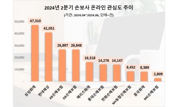 지난 2분기 주요 손해보험사 가운데 온라인에서 소비자 관심도(정보량=포스팅 수)가 가장 높은 곳은 '삼성화재'로 나타났다. '현대해상'과 'KB손해보험'이 뒤를 이었다.삼성화재는 티맵 점수를 운전자 보험에 20% 가까이 큰폭 할인 적용하고, 긴급 출동 때에도 높은 수준의 서비스를 제공함으로써 소비자들의 칭찬을 받았다.8일 데이터앤리서치는 뉴스·커뮤니티·블로그·카페·유튜브·트위터·인스타그램·페이스북·카카오스토리·지식인·기업/조직·정부/공공 등 12개 채널 23만개 사이트를 대상으로 지난 4월부터 6월까지 임의선정한 10개 손해보험사의 정보량에 대해 조사했다고 밝혔다.조사 대상 손보사는 2분기 정보량 순으로 △삼성화