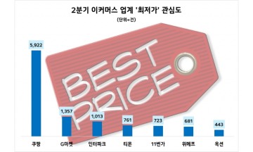 소비자들은 올해 2분기 국내 7개 이커머스 중 쿠팡 상품이 온라인에서 '최저가'가 압도적으로 많았다는 포스팅을 한 것으로 조사됐다.G마켓과 인터파크가 뒤를 이었다.8일 데이터앤리서치는 본지 의뢰로 뉴스·커뮤니티·블로그·카페·유튜브·트위터·인스타그램·페이스북·카카오스토리·지식인·기업/조직·정부/공공 등 12개 채널 23만개 사이트를 대상으로 국내 이커머스 업계에 대해 지난 4월부터 6월까지 정보량(포스팅 수=관심도)을 분석했다고 밝혔다.조사 대상은 임의 선정했으며 정보량 순으로 △쿠팡 △G마켓 △인터파크 △티몬 △11번가 △위메프 △옥션 등이다.쿠팡이 이번 분석에서 총 5,922건의 최저가 관련 포스팅 수를 기록하