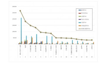 최근 한달간 대기업집단 브랜드평판을 빅데이터로 분석한 결과, 1위 현대차 2위 LG 3위 삼성 순으로 나타났다.5일 한국기업평판연구소(소장 구창환)는 지난 6월 5일부터 7월 5일까지의 66개 대기업집단 브랜드 빅데이터 1억3,700만3,520개를 분석해 대기업집단의 미디어, 소통, 커뮤니티, 사회공헌, 소비자지수, ESG를 분석하여 브랜드평판지수를 측정했다. 지난 6월 브랜드 빅데이터 1억4,255만6,927개과 비교하면 3.90% 줄어들었다.브랜드에 대한 평판은 브랜드에 대한 소비자들의 활동 빅데이터를 참여가치, 소통가치, 소셜가치, 시장가치, 재무가치로 나누게 된다. 브랜드평판지수는 소비자들의 온라인 습관이 브랜드 소비에 큰 영향을 끼친다