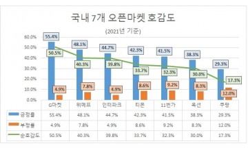 '쿠팡' 2021년 오픈마켓 관심도 톱…'G마켓' 호감도 1위