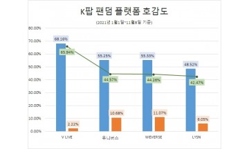 K팝 팬덤 플랫폼 중 'V LIVE' 관심·호감도 1위…'WEVERSE'·'유니버스' 순