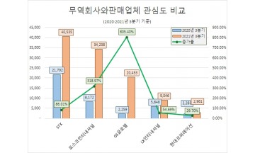 최근 요소수 사태로 물류대란 우려가 지속하고 원자재·에너지 가격 인상이 이어지고 있는 가운데 무역회사와 판매업체들의 올 3분기 관심도는 STX가 가장 높은 것으로 나타났다. 전년 동기비 정보량 증가율 최고는 'GS글로벌'이 차지했다.11일 본지는 뉴스·커뮤니티·블로그·카페·유튜브·트위터·인스타그램·페이스북·카카오스토리·지식인·기업/조직·정부/공공 등 12개 채널 22만개 사이트를 대상으로 국내 5개 무역회사와 판매업체들의 빅데이터 분석을 실시했다.분석 대상 무역회사와 판매업체는 올 3분기 정보량 순으로 ▲STX(대표 박상준) ▲포스코인터내셔널 (대표 주시보) ▲GS글로벌(대표 김태형) ▲LX인터내셔널(대표 윤춘성)