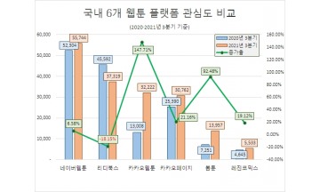 '네이버웹툰' 웹툰 플랫폼 중 관심도 '톱'…호감도 '레진코믹스' 1위