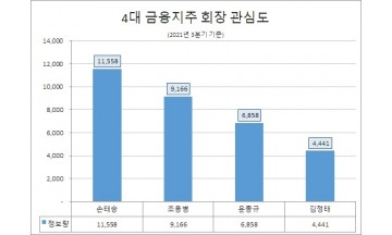 손태승 우리금융 회장 정보량 1위…조용병 신한지주 회장 호감도 '톱'