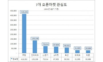 3분기 오픈마켓 관심도 '쿠팡' 1위…'G마켓' 호감도 '톱'