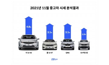 더뉴K3·올뉴K7·QM6·G4렉스턴 順…헤이딜러, 11월 중고차 시세 상승