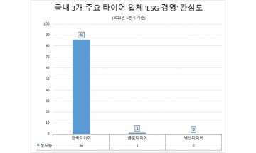 타이어 업계 'ESG 경영' 관심도 살펴보니 한국타이어 '독야청청'