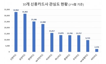 '신한카드' 올 3~4월 관심도 '톱'…'비씨카드' 호감도 1위