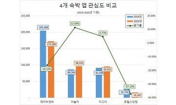 야놀자' 코로나19에도 관심도 증가율 1위…정보량 1위 '에어비앤비'는 감소세