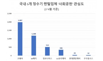 '코웨이' 올 사회공헌 관심도 렌털업계 톱…'SK매직' 뒤이어