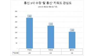통신 3사 수장들이 올 신년사에서 너나 할 것 없이 ‘탈 통신’을 화두로 내세운 가운데 '탈 통신' 키워드의 포스팅 수가 가장 많은 통신사는 구현모 사장의 'KT'인 것으로 나타났다.'탈 통신'은 국내 통신사들이 포화 상태에 이른 국내 통신 사업 비중을 줄이고 미디어·AI·B2B 등 비통신 사업 부문을 늘린다는 개념을 설명할 때 쓰인다. 24일 글로벌빅데이터연구소(소장 김다솜)는 국내 3대 통신사를 대상으로 올 1월1일부터 3월21일까지 80일 간 뉴스·커뮤니티·블로그·카페·유튜브·트위터·인스타그램·페이스북·카카오스토리·지식인·기업/조직·정부/공공 등 12개 채널 22만개 사이트에서 수장 이름과 '탈 통신' 키워드가 들어간 포