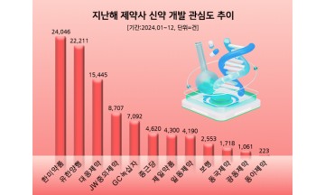 한미약품, 지난해 제약사 신약 개발 관심도 1위…유한양행·대웅제약 순
