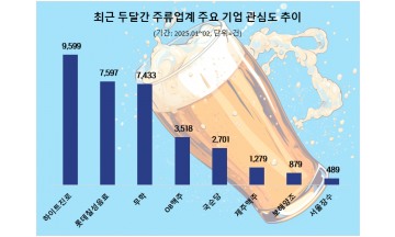 테라 잇단 호평 '하이트진로' 올 1,2월 주류업계 관심도 1위…롯데칠성음료 뒤이어