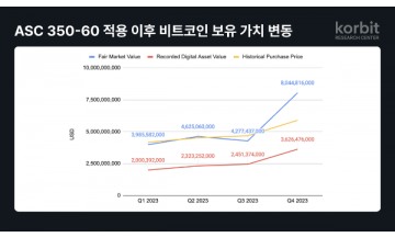 코빗(대표 오세진) 산하 코빗 리서치센터가 가상자산 회계 기준 내용을 다룬 보고서 'ASC 350-60 도입과 가상자산 회계 처리 기준'을 발간했다고 10일 밝혔다. 코빗 리서치센터는 지난 2023년 FASB(미국 재무회계기준위원회)가 도입한 회계 기준 'ASC 350-60'에 대해 설명하고, 이를 통해 기업의 재무제표에 미치는 영향을 분석했다. 코빗 리서치센터에 따르면 US GAAP(미국 회계기준)의 기존 가상자산 회계 처리 방식인 ASC 350-30은 가상자산을 원가 기준으로 평가하고 손상차손만 반영하는 비대칭적 구조로, 기업 재무제표가 실제 보유 자산 가치를 제대로 반영하지 못하는 문제가 있었다. 이에 따라 비트코인 보유 기업들은 회계적 불확실성과