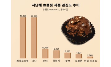 선물용 잇단 추천 '페레로로쉐' 지난해 초콜릿 관심도 1위…롯데 '가나' 바짝 추격
