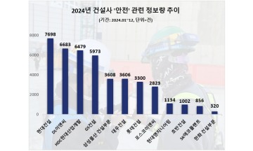 지난해 국내 주요 건설사 가운데 '안전 경영'에 가장 많은 관심을 쏟은 곳은 '현대건설'로 나타났다. 이어 DL이앤씨와 HDC현대산업개발 순이었다.19일 데이터앤리서치는 빅데이터뉴스 의뢰로 뉴스·커뮤니티·블로그·카페·유튜브·트위터·인스타그램·페이스북·카카오스토리·지식인·기업/조직·정부/공공 등 12개 채널 23만개 사이트를 대상으로 지난해 국내 건설사 '안전 경영'에 대한 온라인 정보량을 분석했다고 밝혔다.조사 대상은 국토교통부가 발표한 '2023 국내 시공능력평가' 상위 건설사 12곳으로 정했다. 지난해 정보량 순으로 △현대건설(000720) △DL이앤씨(375500) △HDC현대산업개발(294870) △GS건설(006360) △삼성물산(02