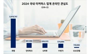 쿠팡이 지난해 국내 이커머스 업계에서 가장 높은 소비자 관심도를 기록했다.24일 여론조사기관인 데이터앤리서치는 2024년 1월부터 12월까지 뉴스·커뮤니티·카페·유튜브·블로그·트위터·인스타그램·페이스북·카카오스토리·지식인·기업/조직·정부/공공 등 12개 채널 24만개 사이트를 대상으로 국내 주요 이커머스업체들의 관심도(포스팅수 = 정보량)를 조사했다고 밝혔다.조사 대상은 임의 선정했으며 정보량 순으로 △쿠팡 △인터파크(쇼핑) △G마켓 △11번가 △SSG닷컴 등이다.이번 조사에서 쿠팡이 총 397만9747건의 온라인 정보량으로 조사 업체 중 압도적인 온라인 관심도 1위를 차지했다.지난해 9월 다음 카페의 한 유저는 "왜 쿠