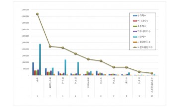 지난 한달간 음료 상장기업 브랜드평판을 빅데이터로 분석한 결과, 1위 하이트진로 2위 롯데칠성 3위 무학 순으로 조사됐다. 한국기업평판연구소(소장 구창환)는 국내 음료 상장기업에 대한 브랜드 빅데이터 평판분석을 실시한 결과 지난 12월 23일부터 1월 23일까지의 음료 상장기업 브랜드 빅데이터가 1803만2298개로 분석되며 지난 12월 음료 상장기업 브랜드 빅데이터 2024만5968개와 비교하면 10.93% 줄어들었다고 23일 밝혔다. 브랜드에 대한 평판은 브랜드에 대한 소비자들의 활동 빅데이터를 참여가치, 소통가치, 소셜가치, 시장가치, 재무가치로 나누게 되며 음료 상장기업 브랜드평판지수는 참여지수, 미디어지수, 소통지수,