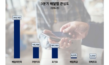 "배민클럽 무료 혜택" 호평 배달의민족, 3분기 관심도 1위…쿠팡이츠 빅2 진입