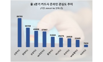신한카드, 3분기 온라인 소비자 관심도 1위…현대카드·삼성카드 순