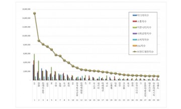지난 한달간 대기업집단 브랜드평판을 빅데이터로 분석한 결과, 1위 LG 2위 한화 3위 현대자동차 순으로 조사됐다. 한국기업평판연구소(소장 구창환)는 지난 11월 6일부터 12월 6일까지의 66개 대기업집단 브랜드 빅데이터 1억1837만1351개를 분석하여 대기업집단의 미디어, 소통, 커뮤니티, 사회공헌, 소비자지수, ESG를 분석하여 브랜드평판지수를 측정한 결과 지난 11월 브랜드 빅데이터 1억1566만5836개와 비교하면 2.34% 증가했다고 6일 밝혔다. 브랜드 평판지수는 브랜드 빅데이터를 추출하고 소비자 행동분석을 하여 참여가치, 소통가치, 미디어가치, 소셜가치, 사회가치로 분류하고 가중치를 두어 나온 지표이며 브랜드 평판