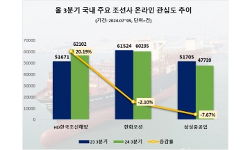 "디지털 기술 도입" HD한국조선해양, 3분기 관심도 1위…한화오션·삼성중공업 순