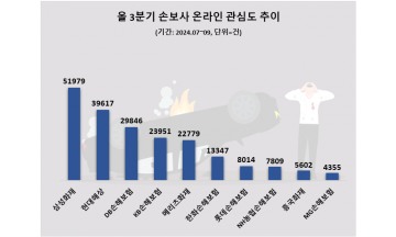 운전자 보험내 자부치 호평 '삼성화재' 3분기 소비자 관심도 1위…현대해상·DB손보 순