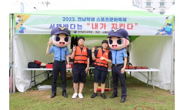 서해지방해양경찰청은 지난 14일 전남 장흥 탐진강변 체육공원에서 열린 ‘2023 전남학생스포츠 문화축제’에서 홍보부스를 운영했다고 15일 밝혔다.이번 홍보부스 운영은 전남교육청 주관 ‘전남학생스포츠 문화축제’에서 학생들을 대상으로 해양경찰을 알리고 해양안전문화를 확산시키기 위해 마련됐다.이날 서해해경청 특공대원 등 5명은 물놀이 안전사고 예방을 위한 구명조끼 착용법, 심폐소생술 등 응급처치 교육을 학생들에게 실시하며 해양안전문화 확산을 위해 노력했다.또한, 해양경찰 캐릭터인 해우리·해누리와 함께하는 포토존 운영과 해양경찰 창설 70주년을 맞아 자체 제작한 머그컵을 증정하며, 문화축제 참가 인원들과 소통의