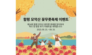 전남 함평군은 한국관광공사와 함께 오는 19일까지 ‘제24회 함평 모악산 꽃무릇축제 이벤트’를 진행한다고 15일 밝혔다.이번 이벤트는 퀴즈이벤트와 방문 후기 작성을 통해 참여할 수 있다. 퀴즈이벤트는 제시된 이미지를 보고 함평의 대표 축제명을 맞히는 것이며 방문 후기 이벤트는 꽃무릇 축제를 방문한 사진을 개인 사회관계망서비스(SNS)에 업로드하고 인증사진을 제출하면 된다.자세한 사항은 한국관광공사 홈페이지 ‘대한민국 구석구석’ 누리집과 함평군 인스타그램 또는 페이스북 계정을 통해 확인할 수 있다.함평군은 추첨을 통해 이벤트 참가자에게 함평천지몰 쿠폰 5만 원권 20개와 스타벅스 카페라떼 교환권 100개를 경품으로 제