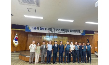 무안군(군수 김산)은 지난 13일 무안경찰서 회의실에서 2023년 자치경찰실무협의회 정기회의를 개최했다고 15일 밝혔다.이날 협의회에는 무안군, 무안경찰서, 소방서, 교육지원청 등 관계기관과 치안 관련 담당자들이 참석했다.이번 자치경찰실무협의회에서는 최근 발생하고 있는 이상동기 범죄예방에 따른 ▲안심치안 환경 조성을 위해 CCTV 설치 확대 ▲정신질환자 대응체계 구축 ▲무안군, 경찰서, 소방서와의 협력방안 등을 강화하기 위한 안건에 대한 토론으로 진행됐다.군 관계자는 “치안실무협의회에서 논의한 안건에 대해 민·관·경이 긴밀한 협조체계를 구축하여 주민이 안전하고 생활할 수 있는 환경조성에 적극적으로 지원할 수 있도
